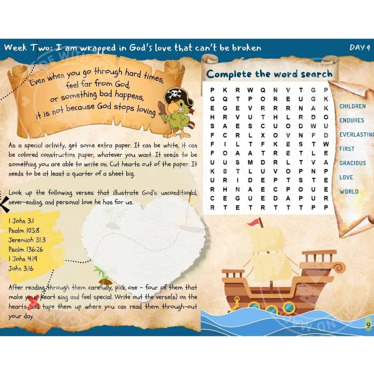 Each week guides your child to open the Bible, read key verses, reflect through questions or journaling, and apply what they learn through prayer and practice.