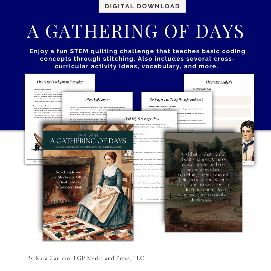 Perfect For: Homeschoolers studying early America or textile arts Teachers pairing literature with women’s history Scouting clubs exploring coding and textile arts Format: Printable PDF | Grade Level: 3-12 More Than a Book—A Thread to the Past! This study doesn’t just teach A Gathering of Days—it weaves history, STEM,…