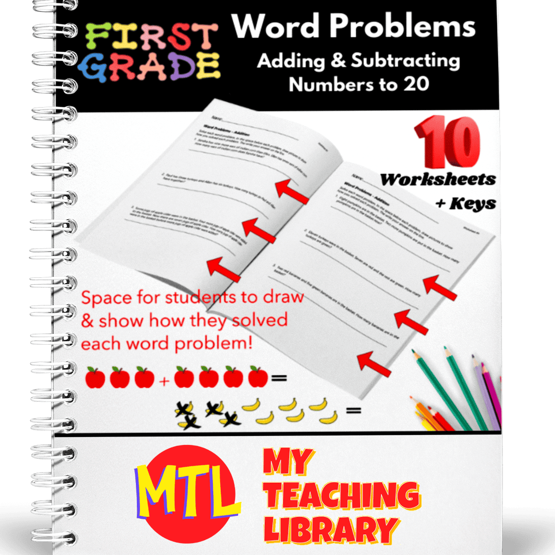 10-word problem worksheets for students to add and subtract numbers 1 to 20! Each worksheet includes 3-word problems and requires students to illustrate each addition and subtraction problem showing their understanding of the concepts. Answer Keys included.