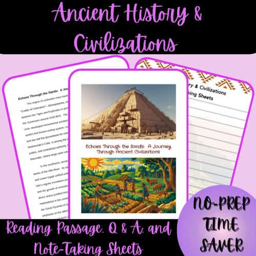 Ancient History and Civilizations Reading Passage, Q & A, and Note-Taking Sheets