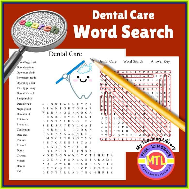 Dental Care Word Search | Dental Health