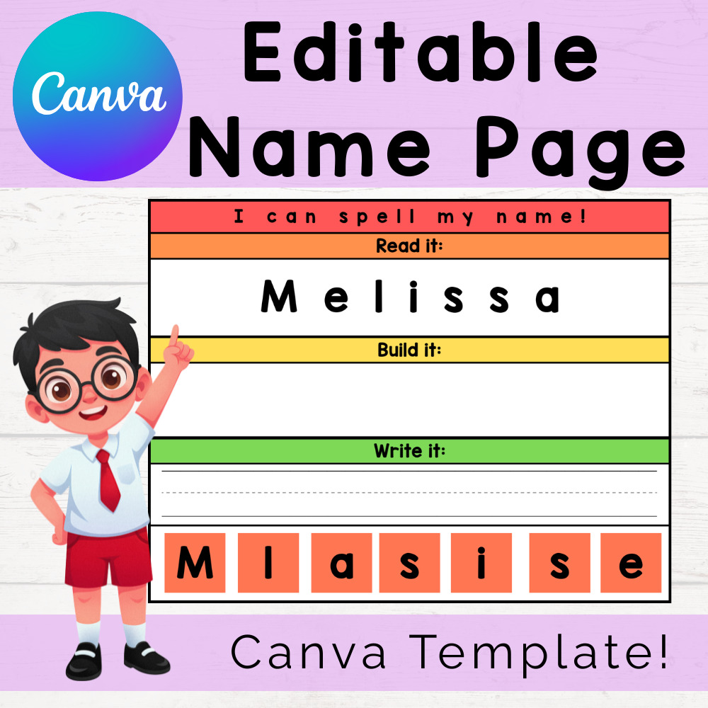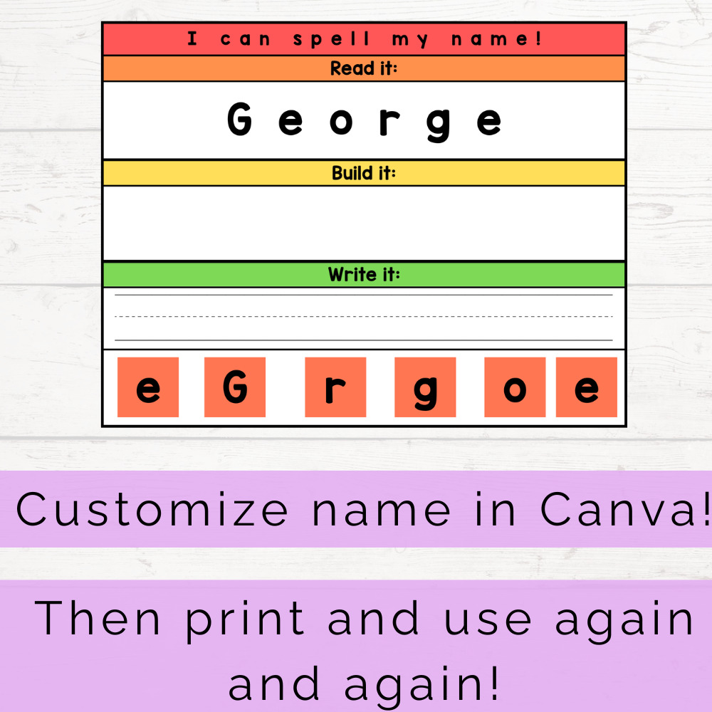 Editable Name Practice Worksheet | Canva Template | Trace, Build & Write Your Name | PreK & Kindergarten