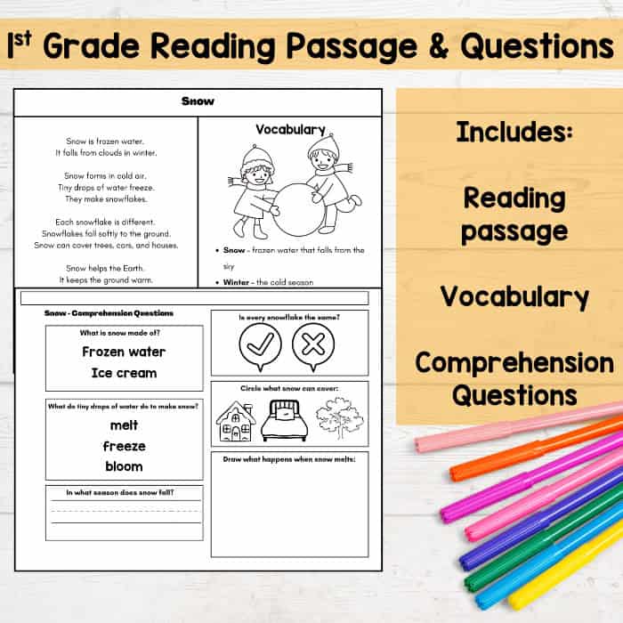 • One reading passage written at a first-grade level all about snow and how it forms