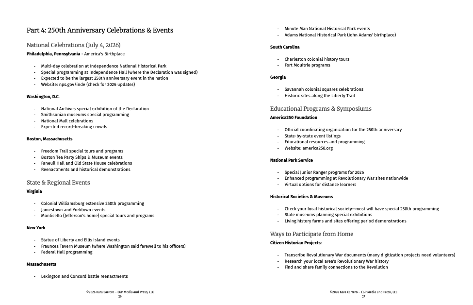 ✓ Planning guide for the 250th anniversary (2026)