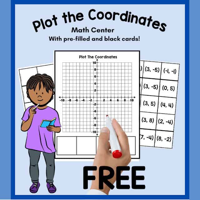 This set comes with some free pre-made coordinate cards, but it also comes with some blank cards so that you or your kids/students can make your own. The idea is to flip over 4 cards and plot them on the graph. But you can use any of the ideas above with this set too!