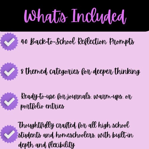 Starting a new school year always feels like a fresh beginning, doesn’t it?  As a homeschool mom who’s walked this path for years, I know how important it is to really understand where our students/homeschoolers are at the start of each year—not just academically, but as thinkers and learners.  That is exactly why I put together these FREE 40 ELA Back-to-School Reflection Prompts for high schoolers.