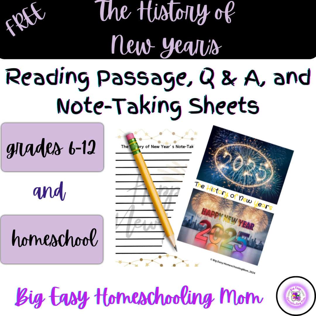 This FREEBIE on The History of New Years Reading Passage, Q & A, and Note-Taking Sheets is perfect for high school students/homeschoolers as well as homeschool students.  Engage students/homeschoolers in exploring New Year’s origins and traditions.
