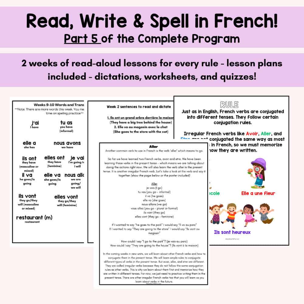 Every unit covers a basic rule of writing in French. For example, the first unit teaches students that nouns are either masculine or feminine and change the articles and adjectives used to describe them. Along with this, every 2 weeks there is a new word list, giving students plenty of time to learn the new words and the new rule. A daily worksheet is given along with daily dictations and a weekly quiz.
