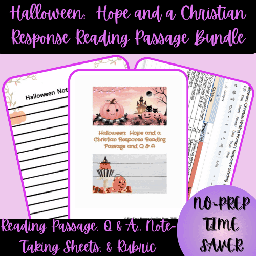 A faith-based Halloween reading passage with higher-order Q&A and note-taking sheets designed to challenge Christian teens to think biblically and critically.