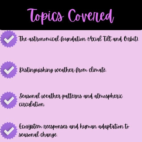 Ultimately, this Weather and the Seasons Reading Passage, Q & A, and 10 Note-Taking Sheets resource is about equipping the next generation with the scientific literacy needed to navigate an increasingly uncertain climatic future.  By exploring the fundamental connections between astronomical physics, atmospheric dynamics, and ecological responses, your student/homeschooler will see the profound interconnectedness of Earth’s systems.  This knowledge is vital, as climate change is fundamentally altering traditional seasonal patterns that have governed life and human civilization for millennia.  Preparing high schoolers to understand these complex long-term shifts and the necessity of comprehensive adaptation strategies is more valuable now than ever before.  This Weather and the Seasons Reading Passage, Q & A, and 10 Note-Taking Sheets resource provides a foundation not just in science, but in essential global citizenship.