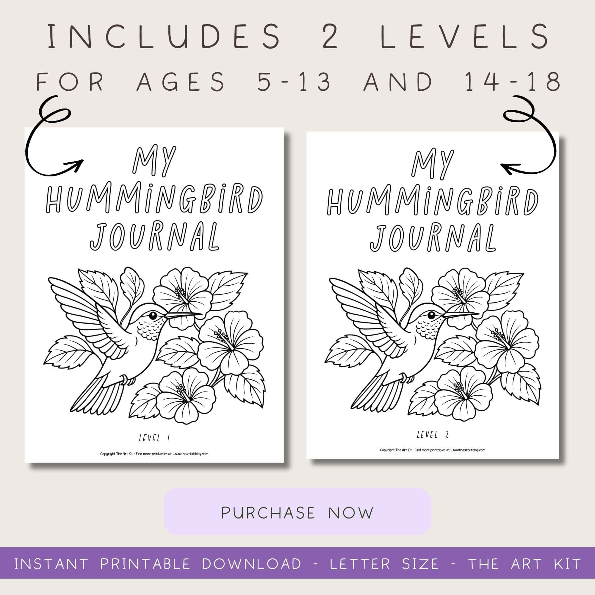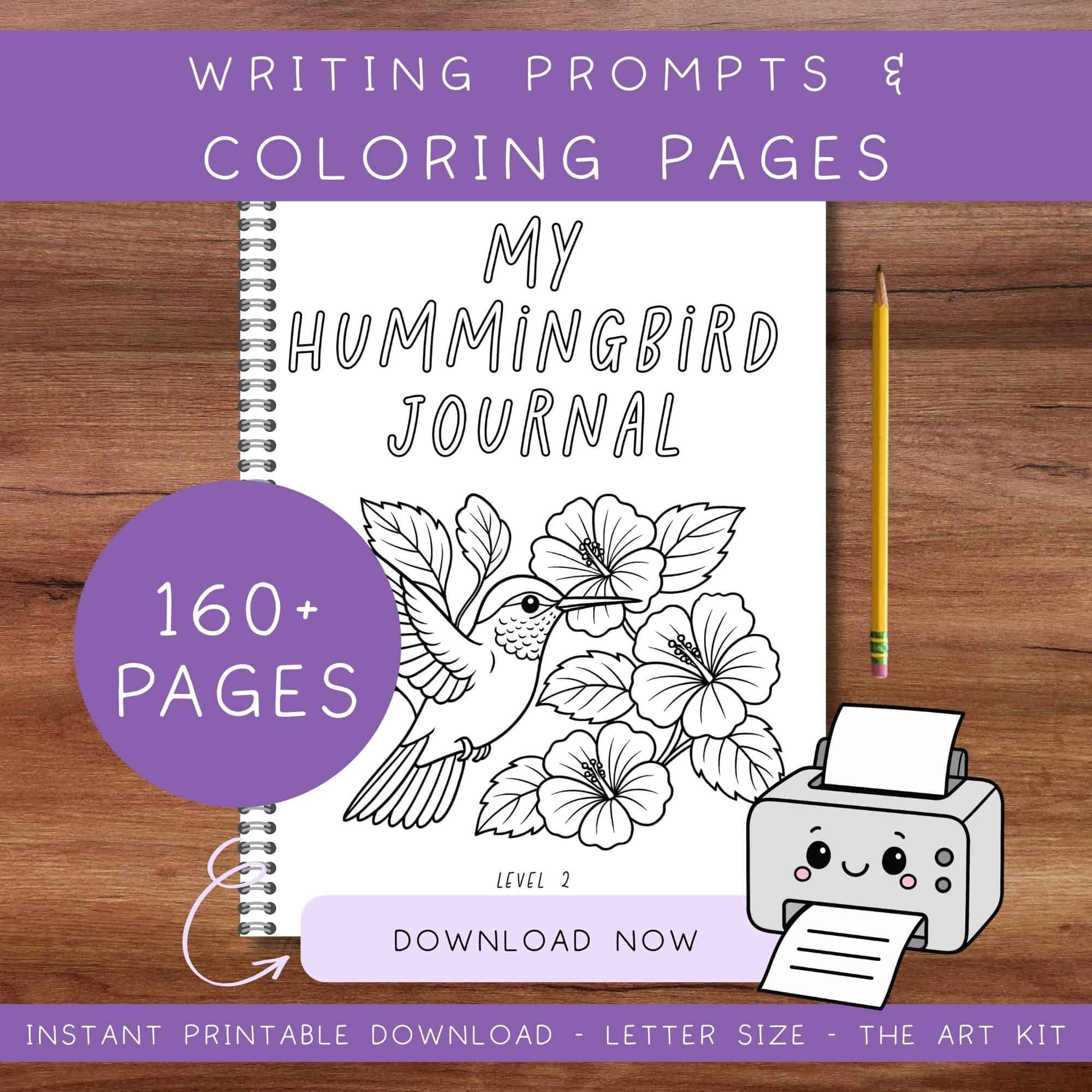 Encourage creative writing Instant Download | Hummingbird Journal Prompts Encourage creative writing with this hummingbird creative writing journal. Coloring pages are also included. Two levels are included, perfect for ages 5-18. Print as 8.5″ x 11″. Includes over 160 pages and two levels Suitable for kids,…
