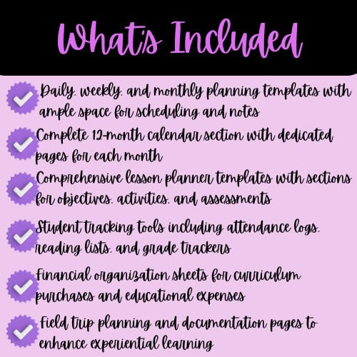 • Beautiful pink color scheme creates an inspiring homeschool planning experience