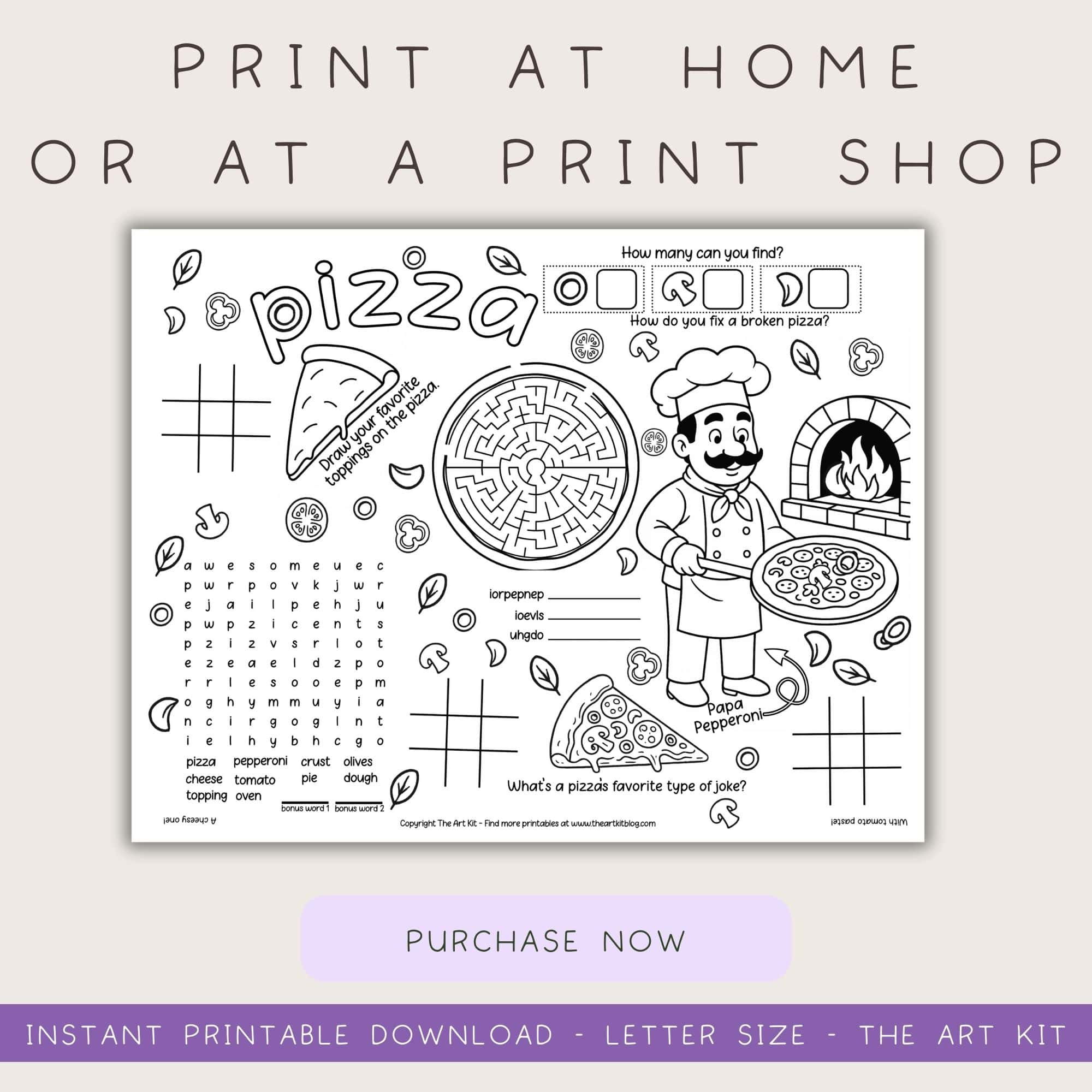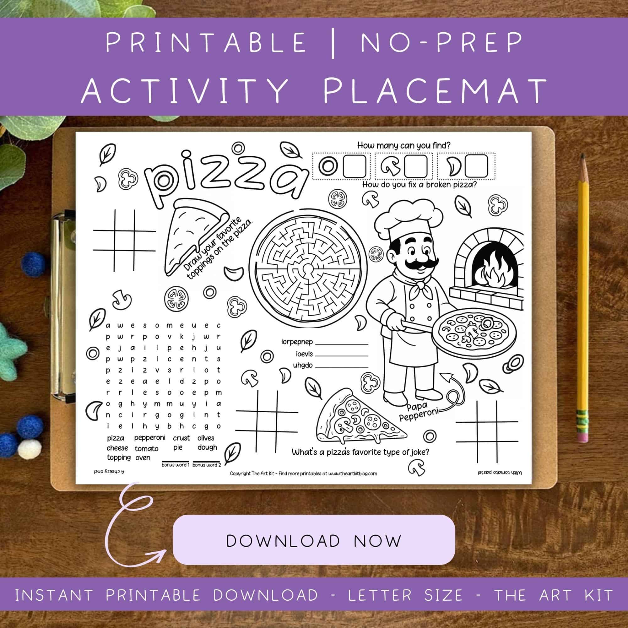 Kids love these pizza placemat activity pages! 🍕 Introducing our printable pizza activity placement for kids, the perfect addition to keep young diners entertained while they wait for their meals! This one page download is designed to be great for restaurants and classrooms, providing a no prep solution that makes it easy…