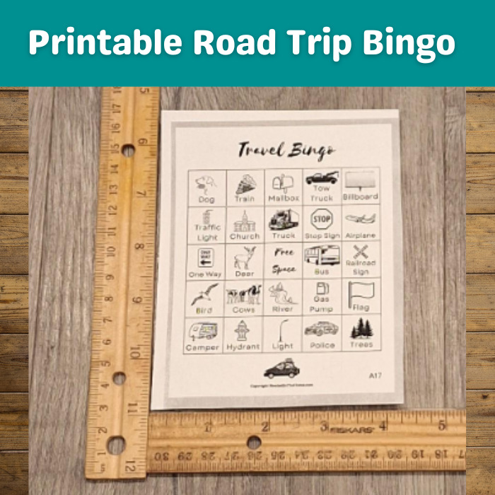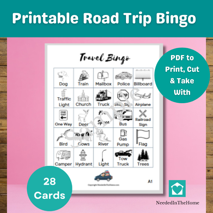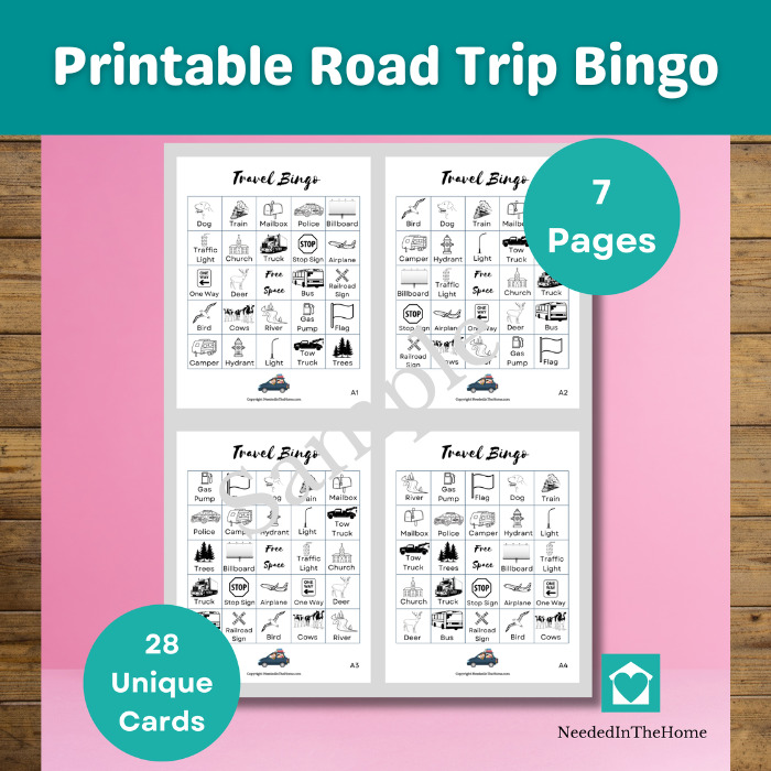 This printable road trip bingo game includes 28 unique travel bingo cards. Each travel bingo card includes images the player would look for while riding in a vehicle. Just print, cut and take with you – along with pens to mark them.