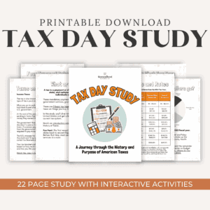 The study is designed to be flexible, allowing homeschool families to integrate it into their curriculum effortlessly. It includes engaging activities, a comprehensive timeline, and information on Tax Day, enabling kids to grasp the concept of taxes interactively and enjoyably.