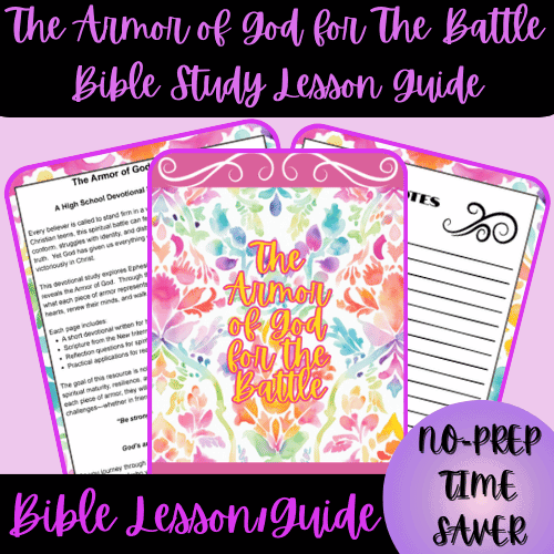 As a homeschool mom, one of my greatest joys is watching my teenage daughter grow in faith and confidence through God’s Word.  The Armor of God for The Battle Bible Study Lesson Guide was created from that same heart—a desire to equip our teens to stand firm in truth and understand the power of God’s protection.  Over the years, I have seen how Bible study can move from just “lessons” to life-changing moments when Scripture becomes personal and practical.  This Armor of God for The Battle Bible Study Lesson Guide was designed to help parents and students connect those dots in a meaningful way.  Rooted in Ephesians 6, each lesson walks through the full armor of God, helping teens grasp what it means to live courageously and faithfully in today’s world.  Whether you are homeschooling, leading a youth Bible group, or simply wanting to deepen family devotions, this Armor of God for The Battle Bible Study Lesson Guide makes it simple, structured, and deeply enriching for everyone involved.