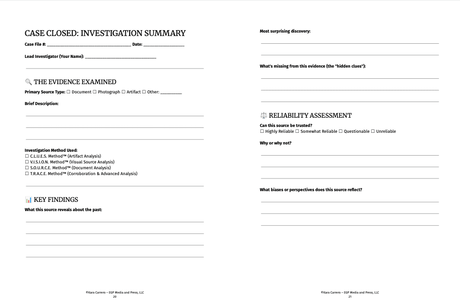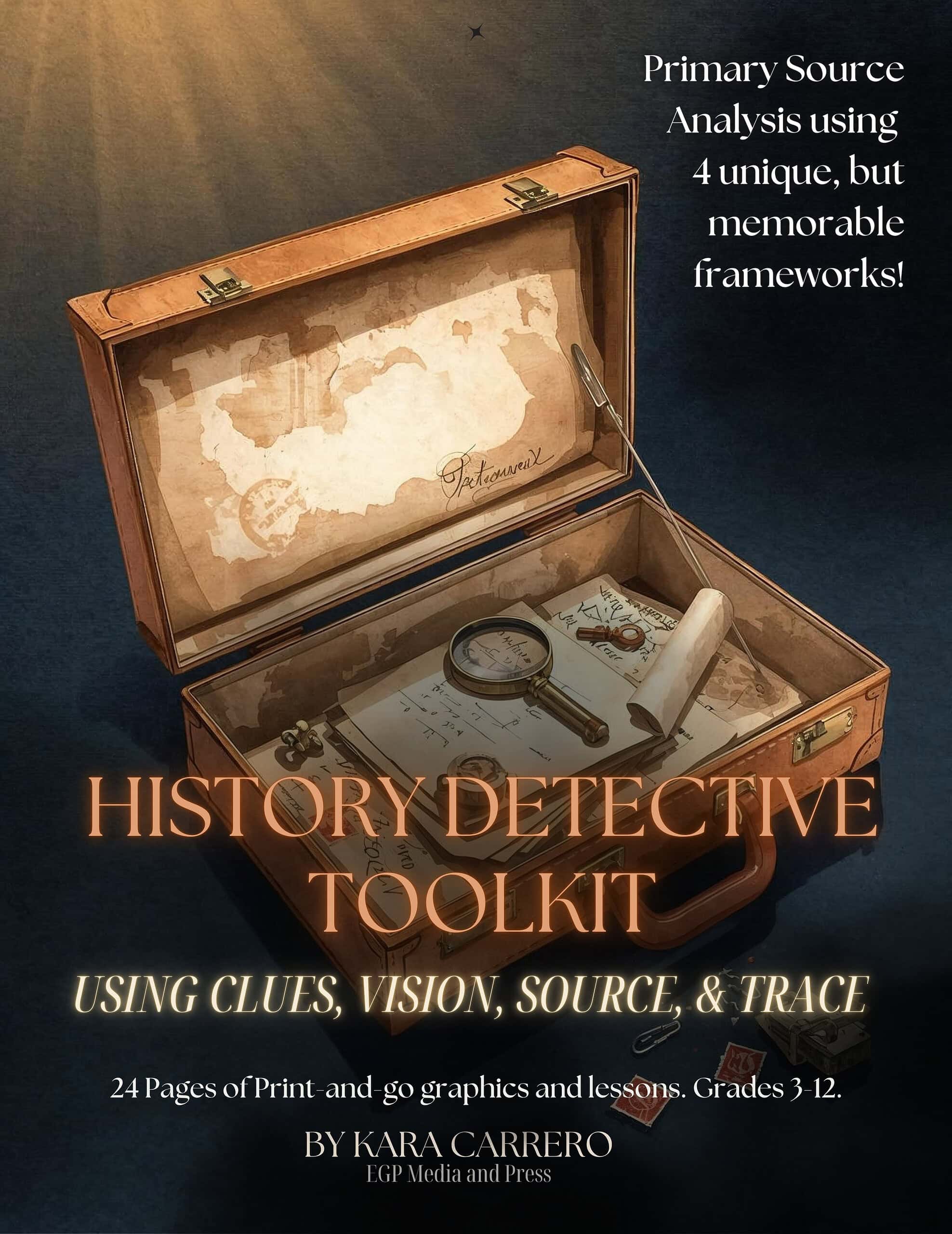 The History Detective’s Toolkit provides four research-backed, grade-adaptable investigation frameworks that teach students exactly what questions to ask when examining historical evidence. No more blank stares. No more surface-level summaries. Just systematic, confident analysis.