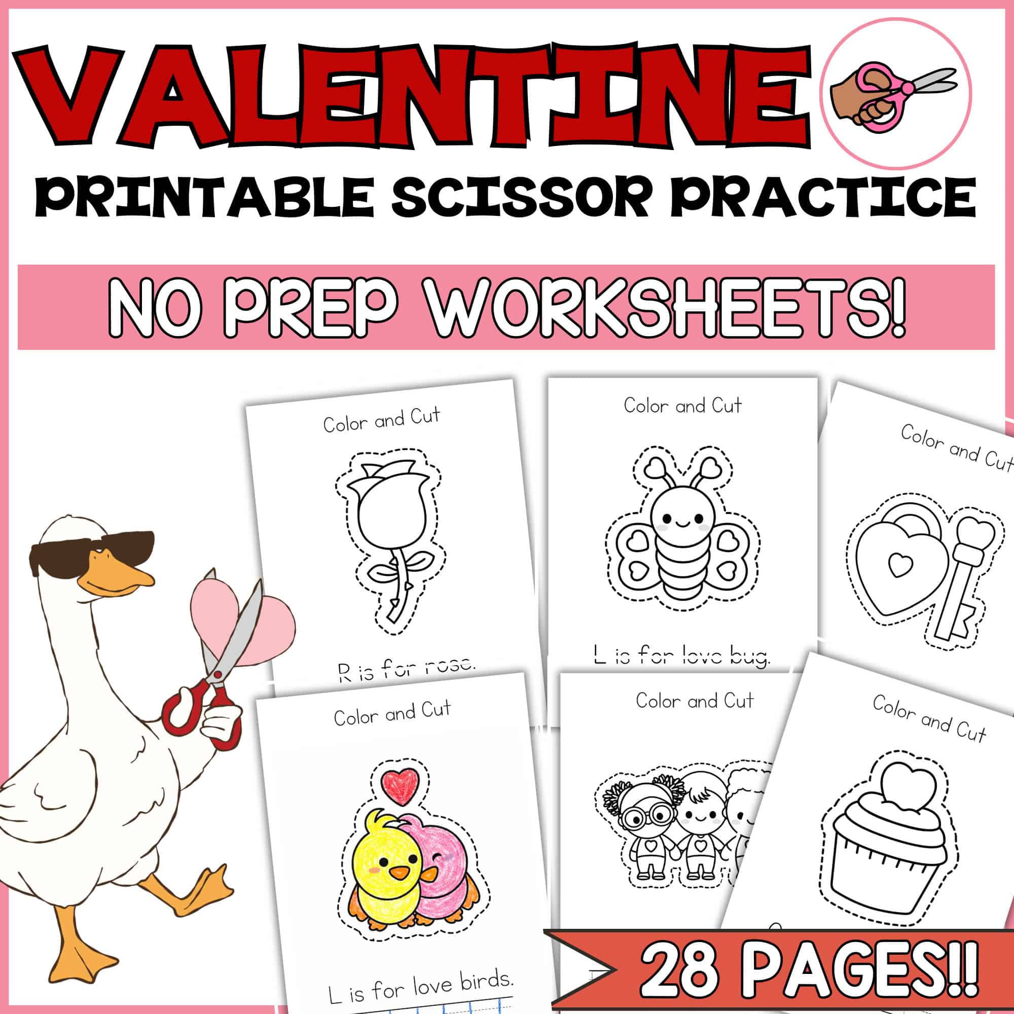 With sweet Valentine-themed illustrations and simple color-and-cut activities, your child can practice essential early skills while enjoying meaningful, screen-free learning time at home.
