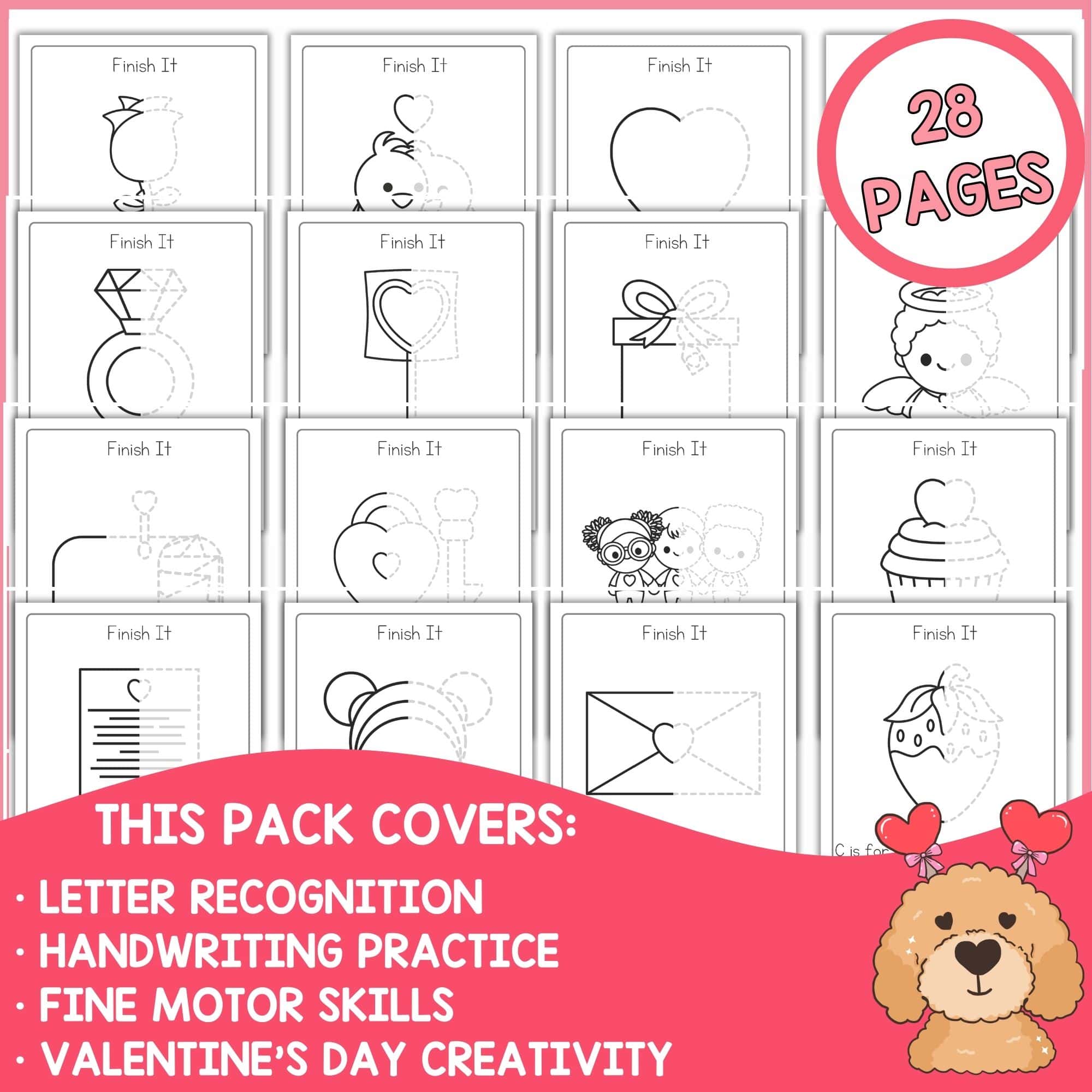 Valentine’s Day Finish the Pictures Alphabet Printables