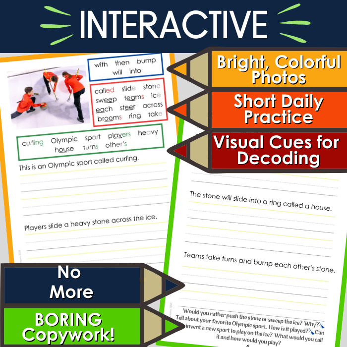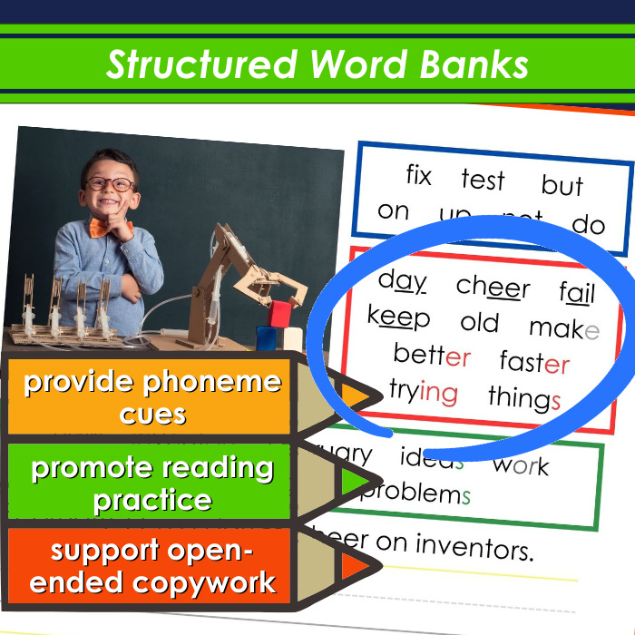 • Structured Word Banks: Provides reading practice and support for open-ended copywork.